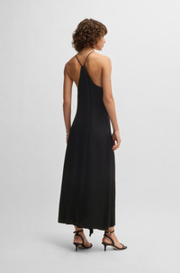 SIZE AND FIT The model wears a size 4 and is 5'9" tall with a, 31" chest, 24" waist and 35" hips. DETAILS Damarni - 50535702 With a clean zip closure, this BOSS Womenswear dress creates a fluid silhouette. Featuring a flowing waterfall detail through the skirt, this dress is crafted in soft sateen and topped with slender straps. Create modern formal looks with this piece. Fit back length: 131 cm (52 inches) QUALITY & CARE INSTRUCTIONS Quality: 100% Viscose, Lining: 100% Viscose Dry Clean Only Do Not Tumble Dry Do Not Bleach Do Not Wash Iron Low Heat