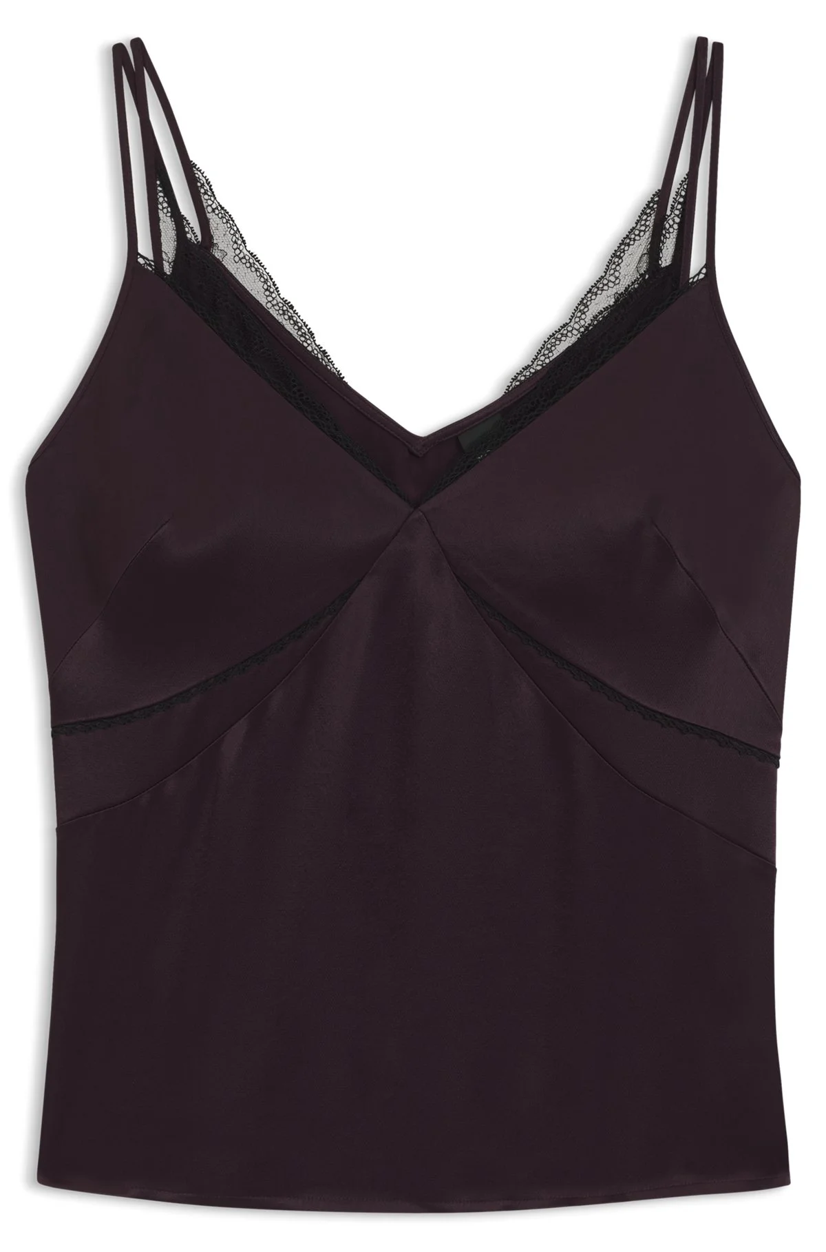 SATIN CAMISOLE TOP WITH LACE TRIMS