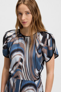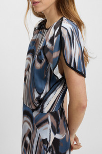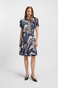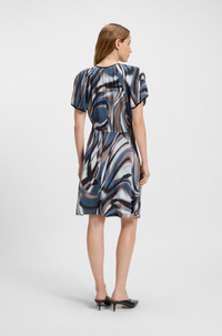 DETAILS Divalia - 50545903 In fluid satin for a beautiful drape, this BOSS Womenswear dress features an elegant swirl print. Floaty sleeves and a keyhole neckline. Regular fit Neckline: Henley Number of buttons: 1 Short sleeves Fit back length: 90 cm (35 inches) QUALITY & CARE INSTRUCTIONS Do Not Tumble Dry Do Not Bleach Iron Low Heat Reduced Dry Clean Quality: 96% Viscose, 4% Elastane Do Not Wash