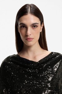SEQUIN DRESS WITH DRAPED NECKLINE