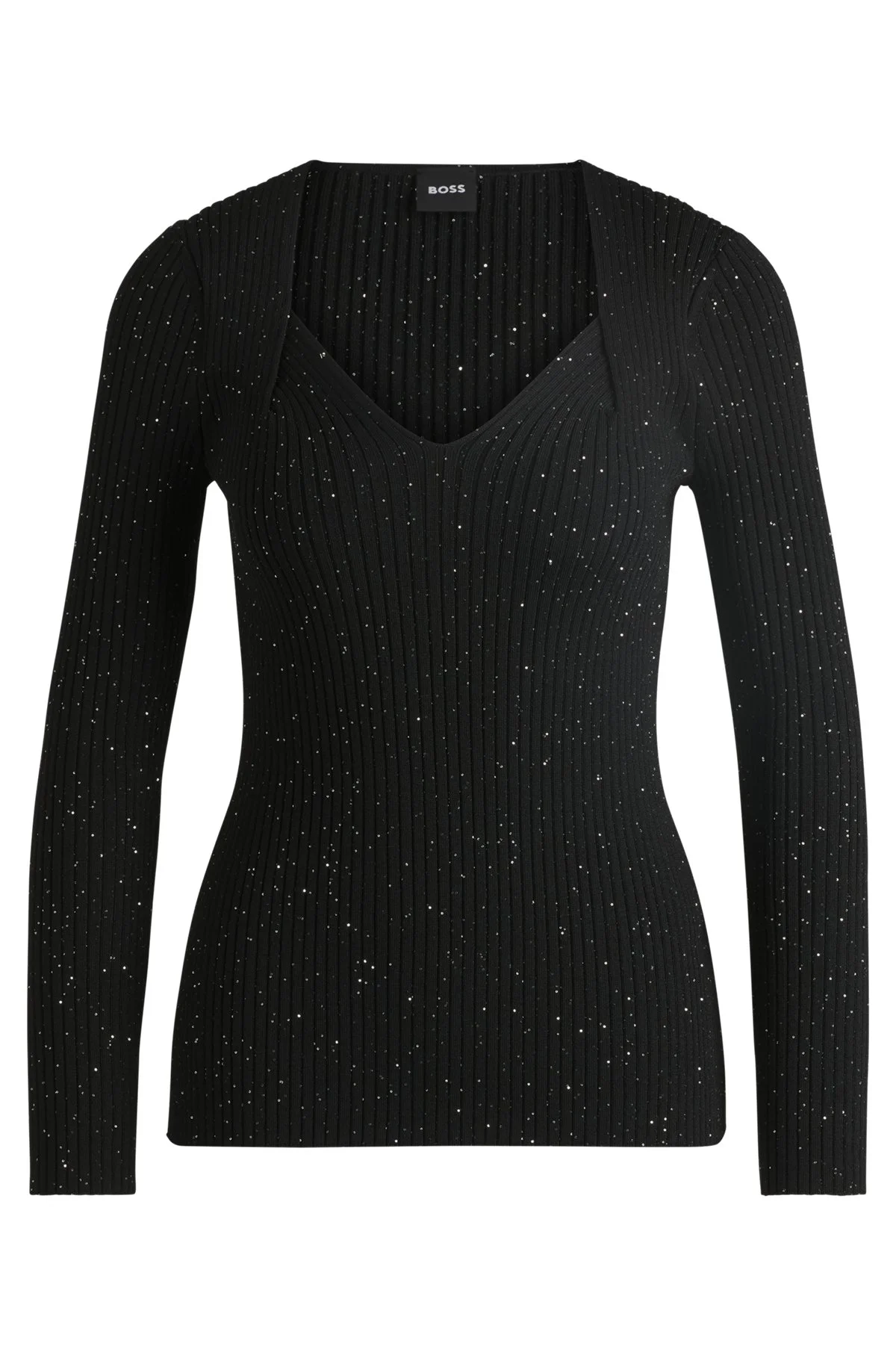 RIBBED SWEATER WITH SEQUIN EMBELLISHMENTS