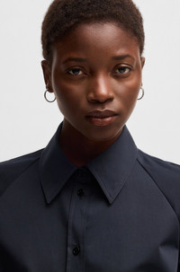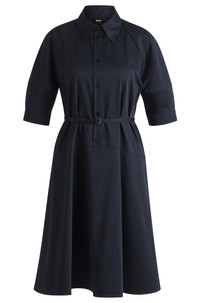 SIZE AND FIT The model wears a size 4 and is 5'10" tall with a, 31" chest, 24" waist and 35" hips. DETAILS Delaurena - 50537388 Featuring modern seaming, this BOSS Womenswear dress is a fresh take on a classic. Crafted in twill made from cotton blended with stretch, this dress has a buckled belt and half placket for a creative effect. A point collar completes this piece. This product is partly made with . Our standards do not allow the use of synthetic fertilizers, pesticides or genetically modified seeds. Fit back length: 95 cm (37 inches) QUALITY & CARE INSTRUCTIONS Do Not Tumble Dry Quality: 96% Cotton, 4% Elastane, pocketing: 64% Viscose, 36% Polyester Iron Low Heat Do Not Bleach Reduced Dry Clean Do Not Wash