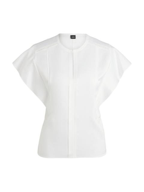 SIZE AND FIT The model wears a size 4 and is 5'9" tall with a, 31" chest, 24" waist and 35" hips. DETAILS Baredana - 50540633 With stretch for easy movement, this BOSS Womenswear blouse is patterned with a creative broken stripe. Cut to a casual regular fit. Regular fit Point collar Fastening top: Concealed closure Long sleeves Button cuffs Patch chest pockets Fit back length: 74 cm (29 inches) QUALITY & CARE INSTRUCTIONS Do Not Tumble Dry Do Not Dry Clean Do Not Bleach Iron Low Heat Quality: 61% Cotton, 37% Viscose, 1% Polyamid, 1% Linen Machine Wash Cold