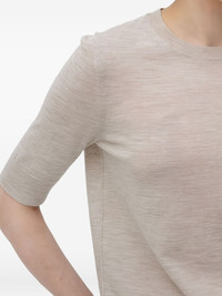 short-sleeve sweater Highlights - Light brown - Round neck - Elbow-length sleeves - Ribbed hem - Fine knit Imported Composition Virgin Wool 100% Washing instructions Hand Wash