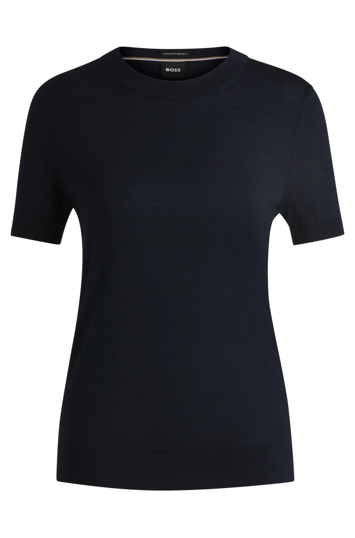 SIZE AND FIT The model wears a size S and is 5'8" tall with a, 30" chest, 23" waist and 35" hips. DETAILS Falyssiasi - 50492857 A versatile short-sleeved sweater by BOSS Womenswear cut to a regular fit with a crew neckline for an easy silhouette. This product is made with wool. Regular fit Neckline: Crew neck Short sleeves Standard length QUALITY & CARE INSTRUCTIONS Iron Low Heat Do Not Tumble Dry Hand Wash Only Reduced Dry Clean Do Not Bleach Quality: 100% Virgin wool