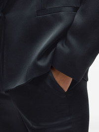 single-breasted blazer Highlights - Black - Front button fastening - Two side slit pockets - Long sleeves Imported Composition Acetate 72%, Viscose 28% Washing instructions Read Manufacturer Guidelines