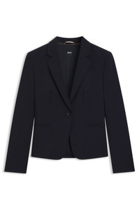 SIZE AND FIT The model wears a size 2 and is 5'10" tall with a, 31" chest, 22" waist and 35" hips. DETAILS Jarua - 50490020 A contemporary jacket cut to a straight fit in virgin wool with a single-breasted front by BOSS Womenswear. Regular fit Notched lapels Number of buttons: 1 Pockets top: Welt pockets No cuffs Fully lined Fit back length: 56 cm (22 inches) QUALITY & CARE INSTRUCTIONS Reduced Dry Clean Do Not Bleach Do Not Tumble Dry Do Not Wash Iron Low Heat Quality: 100% Virgin wool, Lining: 54% Viscose, 43% Polyamid, 3% Elastane, Sleeve lining: 64% Viscose, 36% Polyester