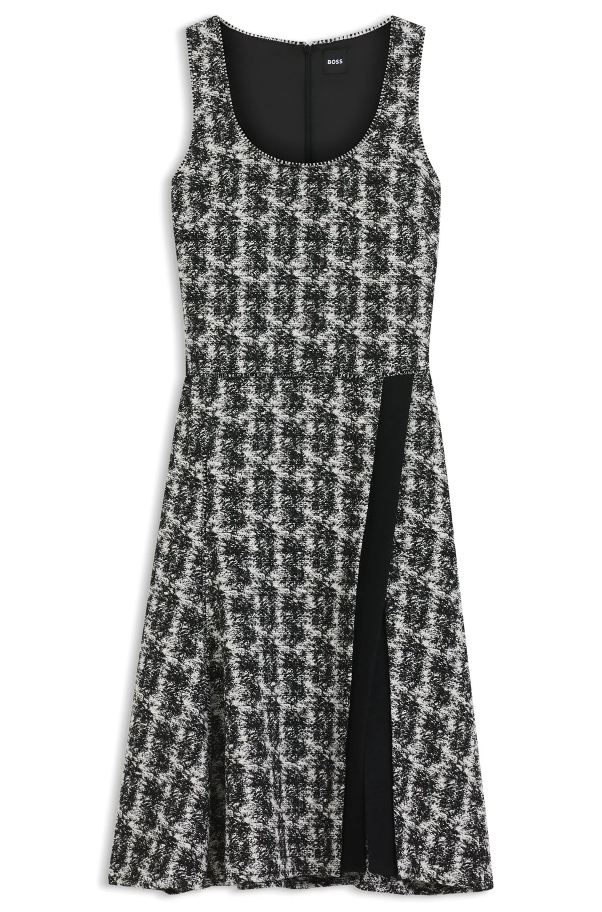 SLEEVELESS DRESS IN PATTERNED FEATHER TWEED