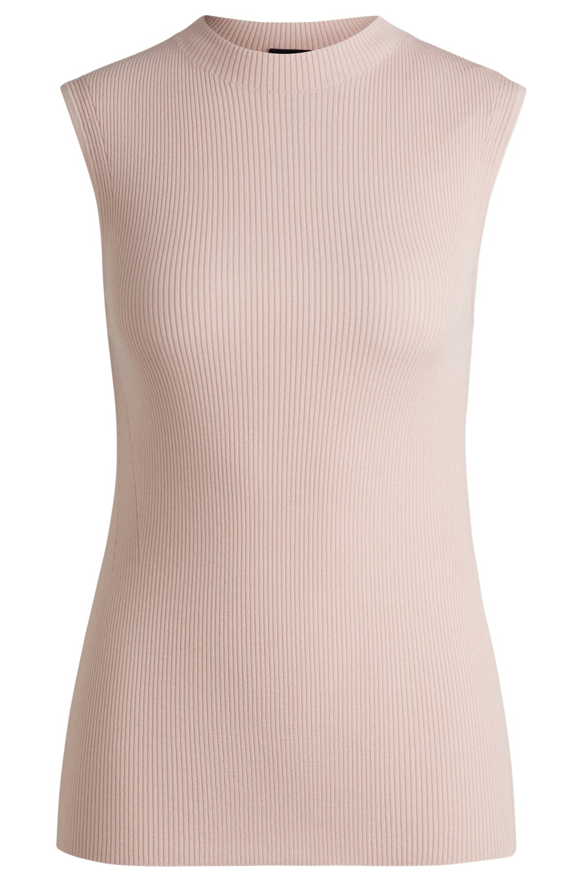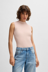 SIZE AND FIT The model wears a size S and is 5'9" tall with a, 31" chest, 24" waist and 35" hips. DETAILS Feskies - 50473237 This ribbed BOSS Womenswear top combines sophistication with effortless style for any occasion. Crafted in breathable, shape-retaining fabric. Chic mock neckline. Slim fit Neckline: Mock Neck Sleeveless Fit back length: 60 cm (24 inches) QUALITY & CARE INSTRUCTIONS Dry Clean Only Do Not Bleach Iron Low Heat Quality: 76% Viscose, 24% Polyamid Hand Wash Only Do Not Tumble Dry