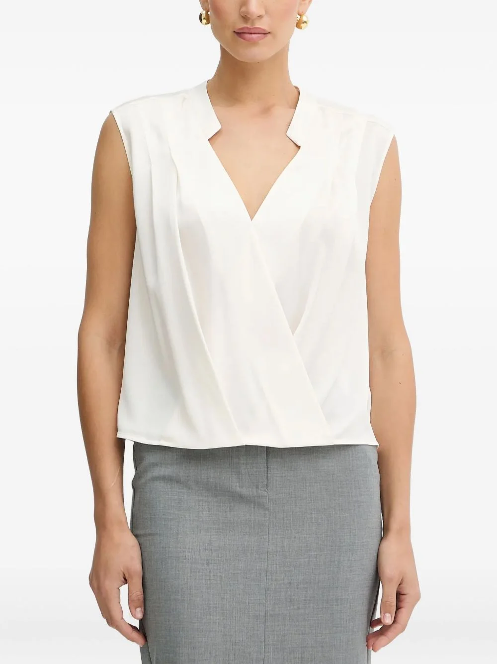 sleeveless v-neck blouse Highlights - White - V-neck - Sleeveless - Wrap effect - Straight hem Imported Composition Silk 90%, Elastane 10% Washing instructions Read Manufacturer Guidelines
