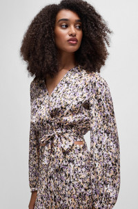 SIZE AND FIT The model wears a size S and is 5'9" tall with a, 29" chest, 23" waist and 34" hips. DETAILS C_Banella - 50519419 A slim-fitting blouse by BOSS, designed with a tie-up wrap front. This elegant style is crafted in satin twill with a contemporary motif. Slim fit Collarless Fastening top: Zip closure Long sleeves Button cuffs QUALITY & CARE INSTRUCTIONS Quality: 100% Polyester Do Not Tumble Dry Machine Wash Cold Do Not Bleach Iron Low Heat Do Not Dry Clean