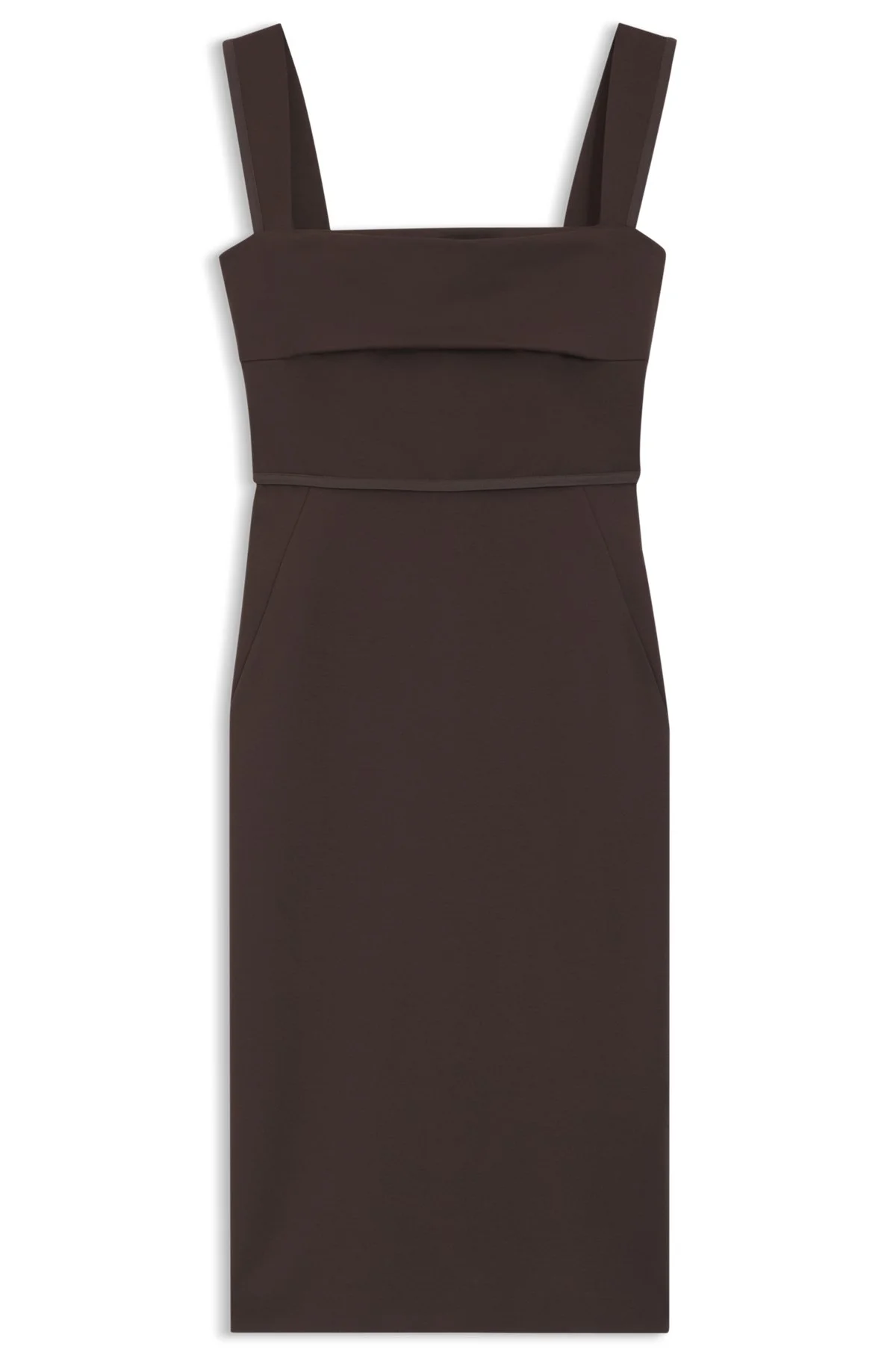 SIZE AND FIT The model wears a size 4 and is 5'10" tall with a, 33" chest, 24" waist and 35" hips. DETAILS With a layered detail at the chest, this BOSS Womenswear dress has a flattering bodycon fit and wide shoulder straps. Stretch jersey for comfort. Slim fit Fastening top: Zip closure Sleeveless Back slit Drapera - 50557444 QUALITY & CARE INSTRUCTIONS Reduced Dry Clean Do Not Bleach Do Not Tumble Dry Do Not Wash Iron Low Heat Material: 65% Viscose, 30% Polyamide, 5% Elastane