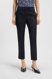 SIZE AND FIT The model wears a size 4 and is 5'9" tall with a, 31" chest, 24" waist and 35" hips. DETAILS Tapria-Crop1 - 50545323 A versatile building block, these BOSS Womenswear trousers are cut to a clean fit with a cropped length. Comfortable stretch cotton. Slim fit Regular rise Hook and zip closure Slim leg Crease Pockets bottom front: French pocket Pockets bottom back: Welt pocket Fit foot width: 35,0 cm (13.8 inches) QUALITY & CARE INSTRUCTIONS Machine Wash Cold Gentle Iron Low Heat Quality: 97% Cotton, 3% Elastane, pocketing: 55% Polyester, 45% Viscose Do Not Tumble Dry Do Not Bleach Reduced Dry Clean