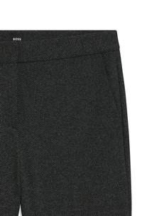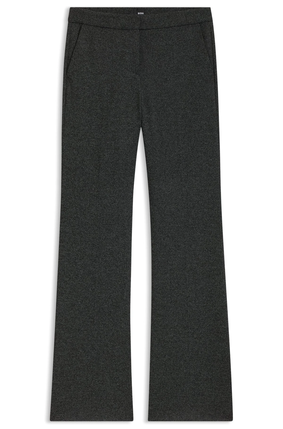 SIZE AND FIT The model wears a size 4 and is 5'9" tall with a, 31" chest, 24" waist and 35" hips. DETAILS Talia3 - 50543725 In stretch twill for comfort in movement, these extra-long BOSS Womenswear trousers are a versatile business foundation. Slim fit with flared leg. Slim fit Regular rise Hook and zip closure Flared leg Crease Pockets bottom front: French pocket Fit foot width: 55,0 cm (21.7 inches) QUALITY & CARE INSTRUCTIONS Quality: 55% Viscose, 42% Polyamid (21% recycled), 3% Elastane, pocketing: 64% Viscose, 36% Polyester Do Not Iron Do Not Tumble Dry Cold, gentle machine wash; reduced spin speed. Do Not Bleach Reduced Dry Clean