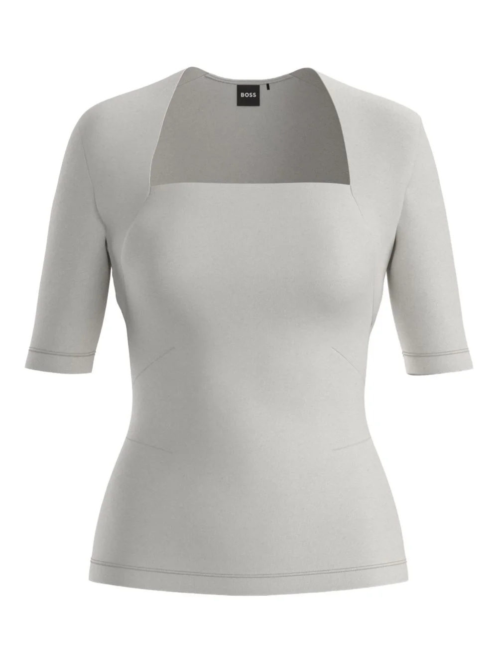 square-neck short-sleeve top Highlights - Light grey - Square neckline - Short sleeves - Close-fitting - Straight hemline Imported Composition Modal 45%, Polyamide 37%, Elastane 18% Washing instructions Read Manufacturer Guidelines