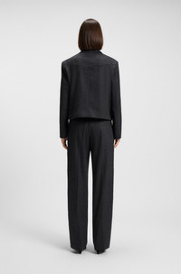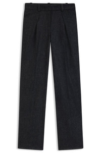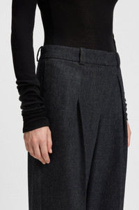 DETAILS Combining modern box pleats with a straight leg, these BOSS Womenswear trousers will become a cool-weather favorite. Melange flannel with added stretch. Straight fit Regular rise Hook and zip closure Straight leg Crease Pockets bottom front: Side pockets Pockets bottom back: Welt pocket C_Taflong - 50547679 QUALITY & CARE INSTRUCTIONS Do Not Wash Do Not Tumble Dry Iron Low Heat Do Not Bleach Material: 57% Polyester, 26% Wool, 15% Viscose, 2% Elastane, pocketing: 55% Polyester, 45% Viscose Dry Clean Only