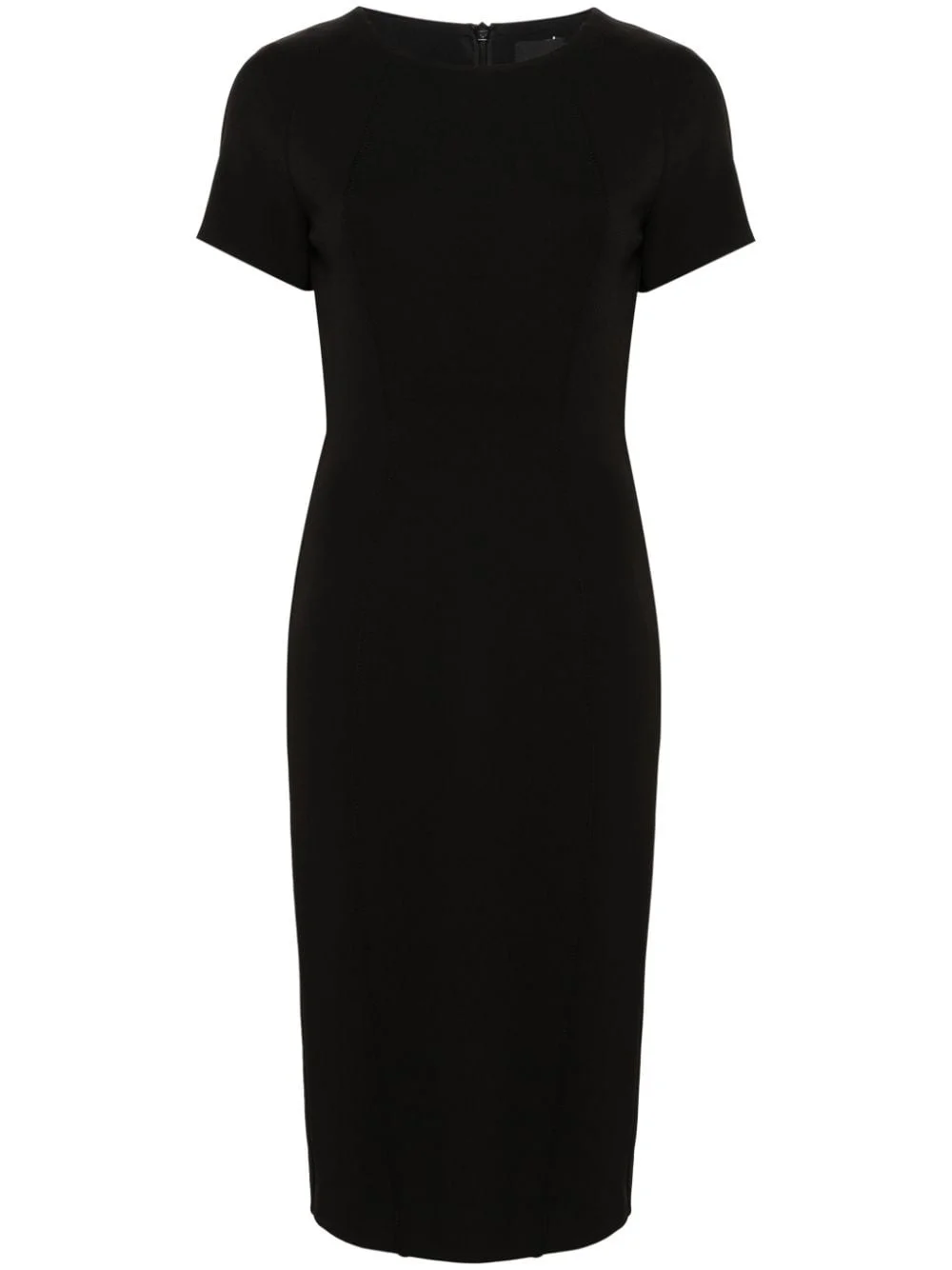 stretch-design midi dress Highlights - Black - Stretch-design - Round neck - Short sleeves - Fitted waistline - Central rear vent - Concealed rear zip fastening Imported Composition Outer: Viscose 84%, Polyamide 12%, Elastane 4% Lining: Viscose 54%, Polyamide 43%, Elastane 3% SIZE & FIT Model measurements Height 5 ft 11 in(1.8 m) Bust/Chest 31.49 in(80 cm) Hips 36.61 in(93 cm) Waist 24.4 in(62 cm) FittingInformation Designed for a close fit throughout Made from a midweight stretch fabric, this piece offers elasticity and flexibility when worn This piece fits true to size – take your usual size Washing instructions Dry Clean Only