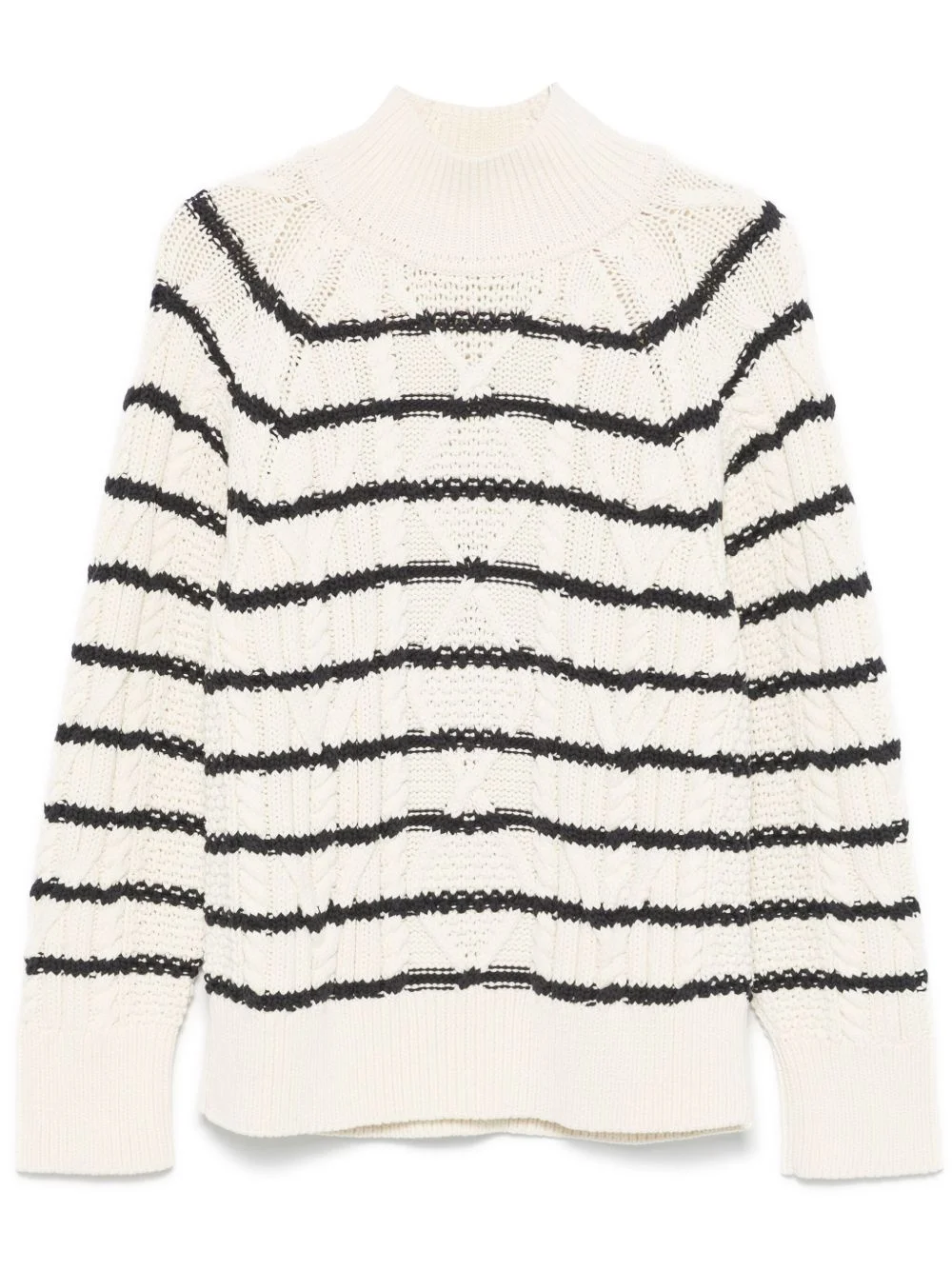 striped sweater Highlights - Blue/white - Cotton-virgin wool blend - Knitted construction - Horizontal stripe pattern - Mock neck - Long sleeves - Ribbed cuffs and hem Imported Composition Cotton 60%, Virgin Wool 40%