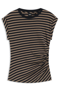 SIZE AND FIT The model wears a size S and is 5'10" tall with a, 31" chest, 24" waist and 34" hips. DETAILS Epka_striped - 50544353 Gathered at the waist for a flattering effect, this slim-cut BOSS Womenswear top is a versatile essential. Soft cotton with stripe pattern. Slim fit Neckline: Crew neck Short sleeves QUALITY & CARE INSTRUCTIONS Do Not Tumble Dry Quality: 100% Cotton, Ribbing: 100% Cotton Do Not Bleach Machine Wash Cold Gentle Do Not Dry Clean Iron Low Heat
