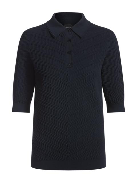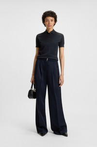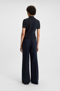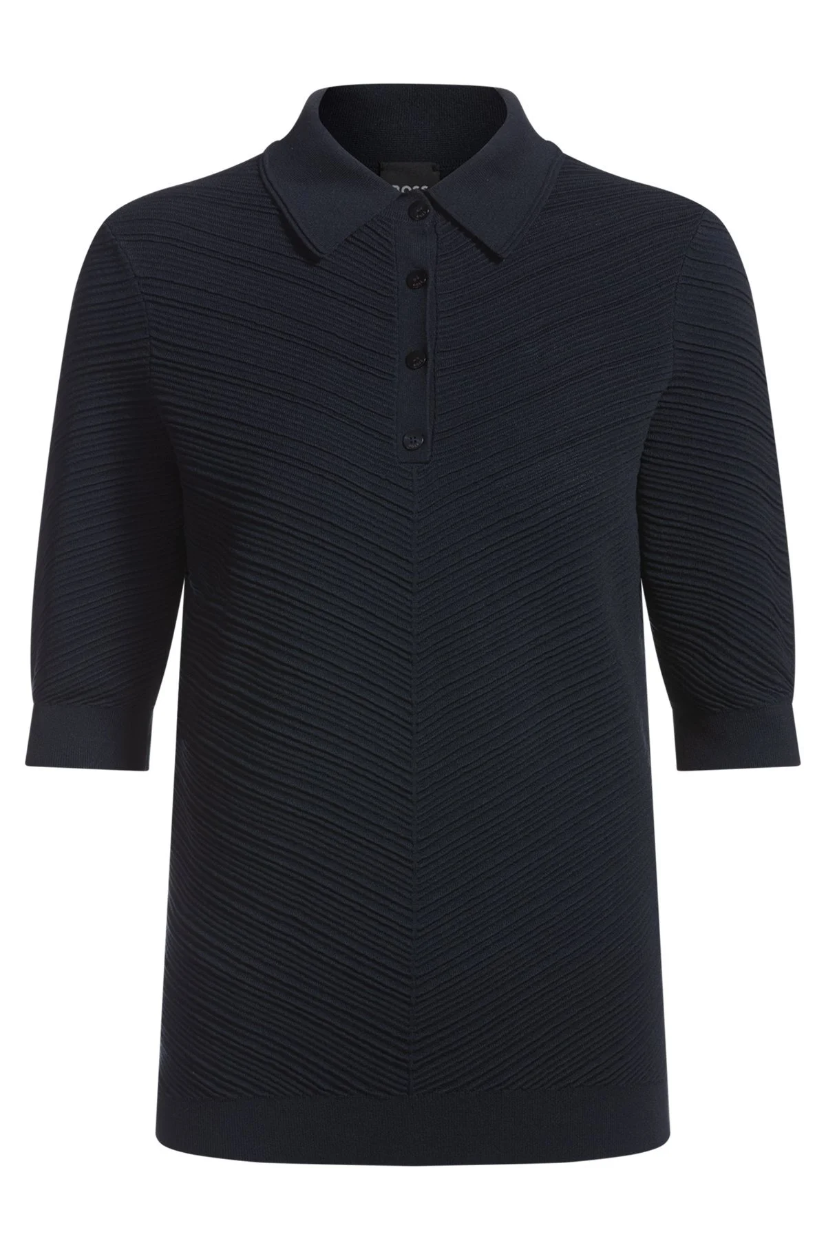 DETAILS Fointa - 50540384 Ideal for tucking into tailored trousers, this BOSS Womenswear sweater has a rich, detailed structure. Smooth trims provide modern contrast. Neckline: Polo collar Short sleeves QUALITY & CARE INSTRUCTIONS Hand Wash Only Quality: 76% Viscose, 24% Polyamid Dry Clean Only Do Not Bleach Iron Low Heat Do Not Tumble Dry