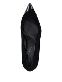 suede leather-toe pumps Highlights - Black - Suede - Leather cap-toe - Block heel - Pointed toe - Slip-on style Imported Composition Outer: Suede 100% Sole: Rubber 100%, Leather 100% Lining: Leather 100%