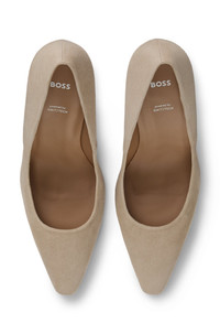 DETAILS Charlize_Pump90_SD - 50546310 Add a confident finishing touch to looks with these elegant BOSS Womenswear pumps, crafted in rich suede. The innovative, cushioning GAIT-TECH® insole supports improved stability when walking in heels and allows for more comfortable wear all day long. Heel height: 9cm/90mm. Fastening top: Slip-on Packaging: Box QUALITY & CARE INSTRUCTIONS Upper material: 100% Goat leather, Lining: 100% Sheepskin, Sole: 100% Leather, Innersole: 100% Sheepskin