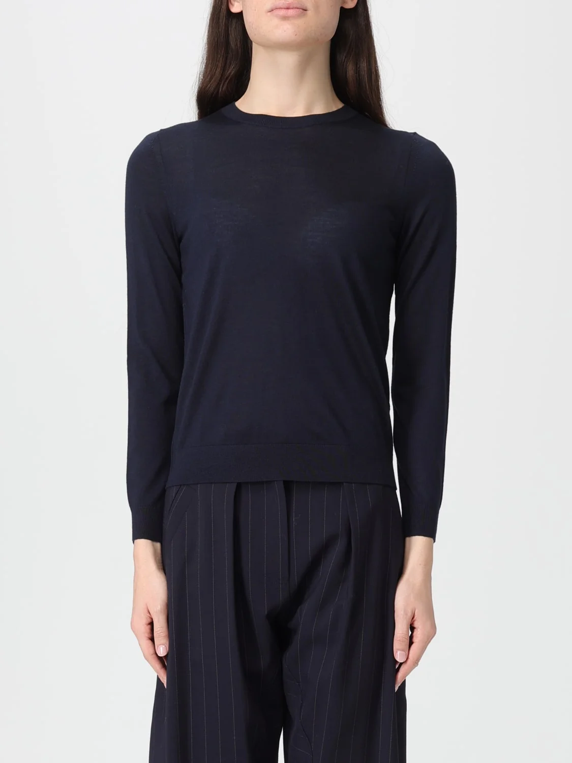 DESCRIPTION - Style: Basic, Casual - Model: Crewneck - Neckline: Crewneck - Shoulders: Regular - Sleeves: Long - Cuffs: Ribbed - Bottom: With ribbed edges, With straight hemline - Materials: Virgin wool - Pattern: Plain-colored DETAILS AND CARE Composition 100% WV SIZE AND FIT Sizes not available Size and fit Regular fit Designer code: 50544987 404 Giglio Code: H28348 Designer: Boss Collection: Boss Woman Category: Clothing Boss