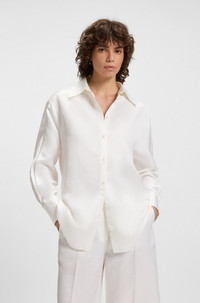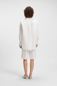 DETAILS Belini - 50535297 Blended with summery linen, this BOSS Womenswear blouse is so easy to style. Trimmed with crochet detailing along the sleeves. Fit back length: 76 cm (30 inches) QUALITY & CARE INSTRUCTIONS Quality: 59% Viscose, 41% Linen Do Not Wash Reduced Dry Clean Do Not Bleach Do Not Tumble Dry Iron Low Heat