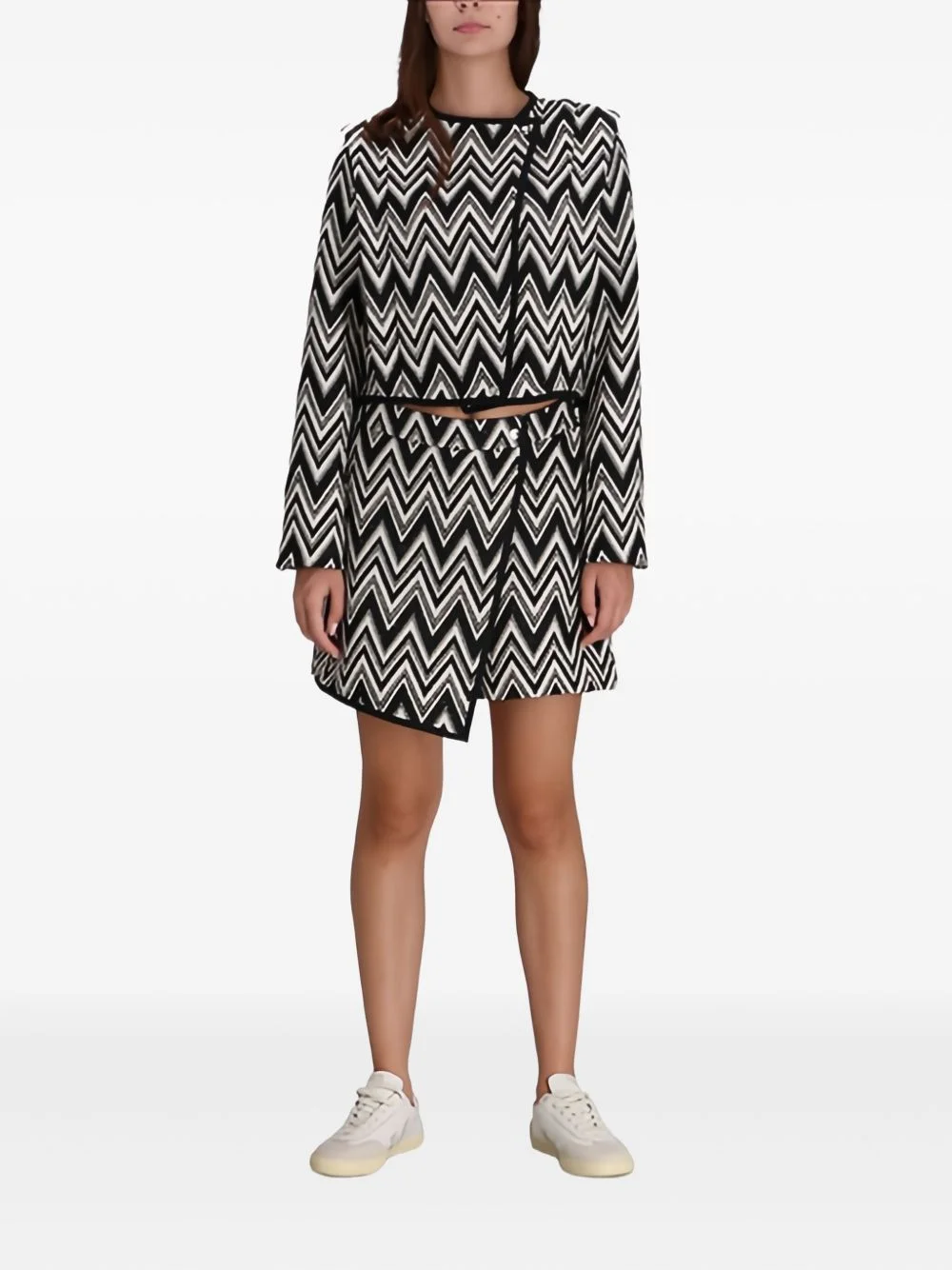 Tijaca zigzag asymmetric mini skirt Highlights - Black and white - Zigzag pattern - Asymmetric hem - Wrap design - Button detail Imported Composition Cotton 100% Washing instructions Read Manufacturer Guidelines