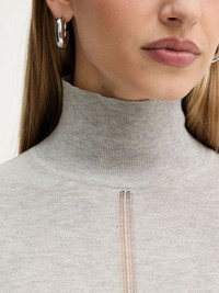turtleneck sweater Highlights - Light grey - Turtleneck - Long sleeves - Straight hem - Embellishment detail Imported Composition Cotton 50%, Virgin Wool 50% Washing instructions Read Manufacturer Guidelines