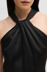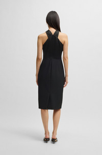 SIZE AND FIT The model wears a size 4 and is 5'10" tall with a, 31" chest, 23" waist and 35" hips. DETAILS Datinar - 50538291 Refresh your business and evening options with this BOSS Womenswear dress. Cut to a slim fit, this dress is made from a combination of stretch fabrics and topped with a twist effect at the neckline. A neat rear zip accentuates the clean profile. Slim fit Fastening top: Zip closure Sleeveless Back vent Partially lined Fit back length: 105 cm (41 inches) QUALITY & CARE INSTRUCTIONS Iron Low Heat Do Not Wash Quality: 67% Viscose, 29% Polyester, 4% Elastane, Lining: 64% Viscose, 36% Polyester, Top: 72% Acetate, 28% Viscose Reduced Dry Clean Do Not Bleach Do Not Tumble Dry