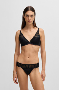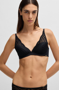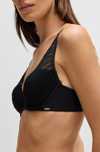 SIZE AND FIT The model wears a size 34B and is 5'9" tall with a, 31" chest, 24" waist and 35" hips. DETAILS UNDERWIRE BRA WAVE L - 50535132 An elegant underwired bra by BOSS Womenswear. Featuring metallic logo lettering and padded cups, this feminine design has lace trims and adjustable straps. Cups: Moulded cups Shoulder strap : Adjustable Padding: Padded QUALITY & CARE INSTRUCTIONS Do Not Bleach Do Not Tumble Dry Hand Wash Only Do Not Iron Do Not Dry Clean Quality: 93% Polyamid, 7% Elastane, Back panel: 85% Polyamid, 15% Elastane, straps: 84% Polyamid, 16% Elastane, cup lining : 100% Polyester