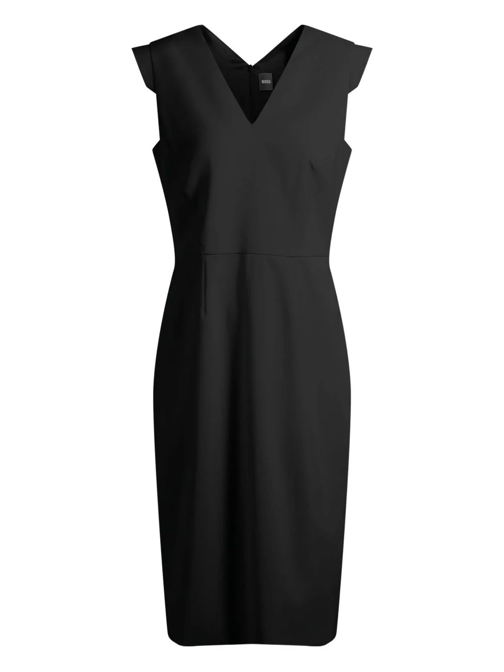 V-neck cap-sleeve midi dress Highlights - Black - V-neck - Cap sleeves - Straight hem - Concealed zip fastening Imported Composition Virgin Wool 100% Washing instructions Read Manufacturer Guidelines