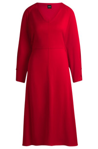 SIZE AND FIT The model wears a size 2 and is 5'10" tall with a, 31" chest, 24" waist and 35" hips. DETAILS Diesha1 - 50533966 A relaxed-fit slip-on dress by BOSS Womenswear. This easy-wear piece has a V neckline and buttoned cuffs for an elegant finish. Relaxed fit Neckline: V-neck Fastening top: Slip-on No cuffs Partially lined QUALITY & CARE INSTRUCTIONS Iron Low Heat Do Not Wash Reduced Dry Clean Do Not Bleach Do Not Tumble Dry Quality: 96% Viscose, 4% Elastane, Lining: 100% Viscose