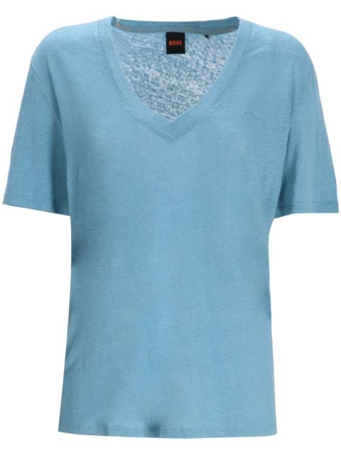 v-neck linen t-shirt Highlights - Black - V-neck - Short sleeves - Linen/flax material Imported Composition Linen/Flax 100% Washing instructions Read Manufacturer Guidelines
