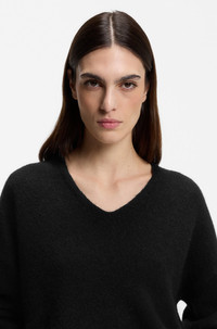 DETAILS Featuring elegant open-knit details, this BOSS Womenswear sweater is crafted in finest Italian yarn with alpaca and wool. Relaxed fit. V neckline. Relaxed fit Neckline: V-neck Long sleeves Standard length C_Fondyssa - 50550464 QUALITY & CARE INSTRUCTIONS Hand Wash Only Reduced Dry Clean Material: 44% Polyamid, 34% Alpaca, 22% Wool Do Not Tumble Dry Do Not Bleach Iron Low Heat