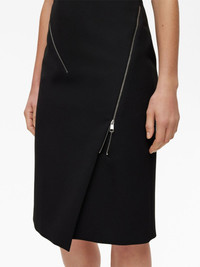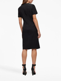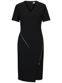 V-neck zip-detail dress Highlights - Black - Tonal stitching - Decorative zip detailing - V-neck - Concealed rear zip fastening - Short sleeves - Asymmetric hem - Knee-length Made in Italy Composition Viscose 67%, Polyester 33% Washing instructions Read Manufacturer Guidelines