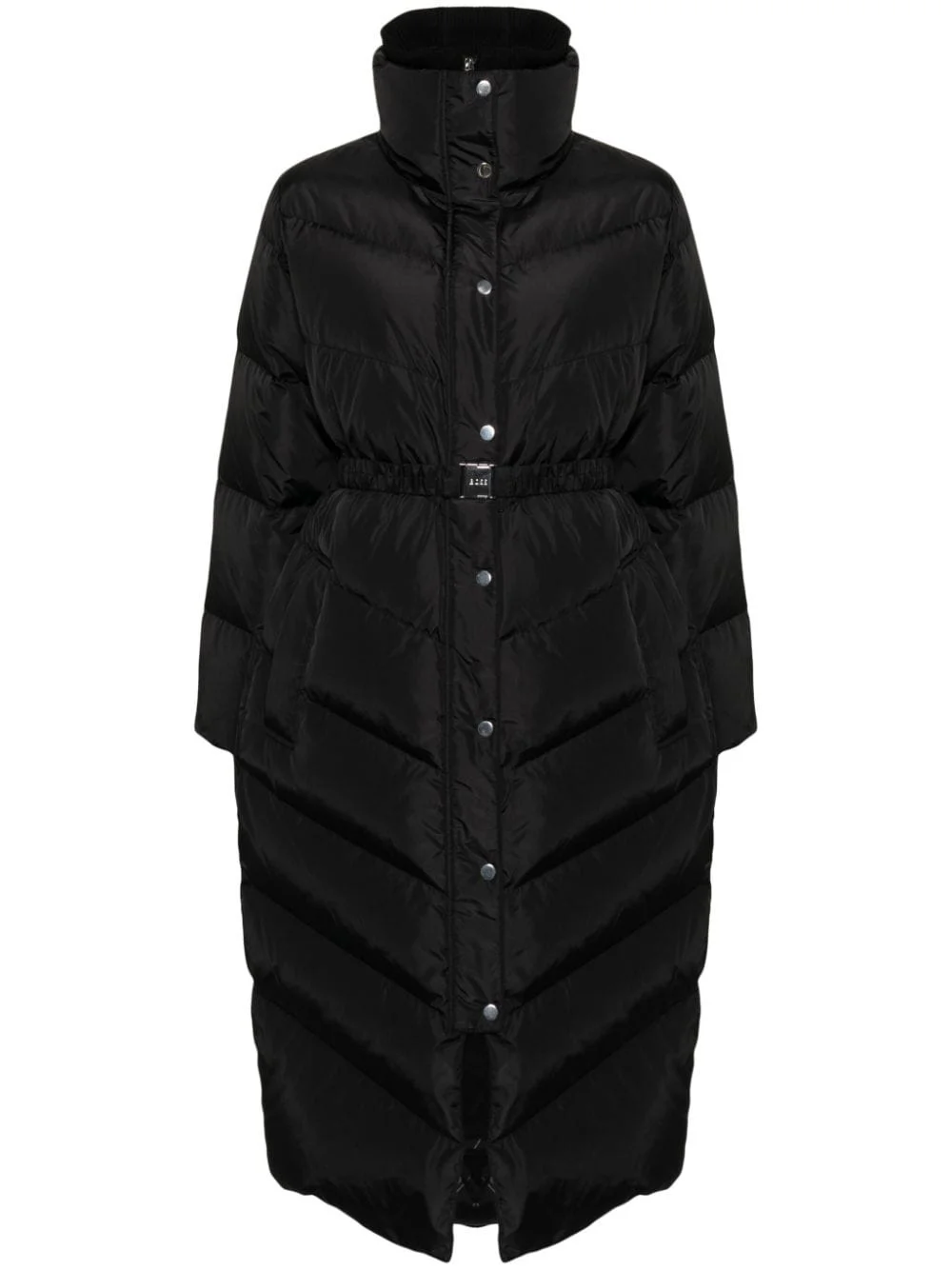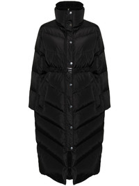 water-repellent padded coat Highlights - Black - Recycled polyester - Water-repellent - Down-feather filling - Padded design - High neck with layered collar - Long sleeves - Elasticated cuffs - Belted waist - Two side slit pockets - Internal patch pocket - Internal logo patch - Full lining - Front press-stud and two-way zip fastening Imported Composition Outer: Recycled Polyester 100%, Polyacrylic 50%, Wool 50% Lining: Feather Down 100%, Polyamide 100% Washing instructions Dry Clean Only