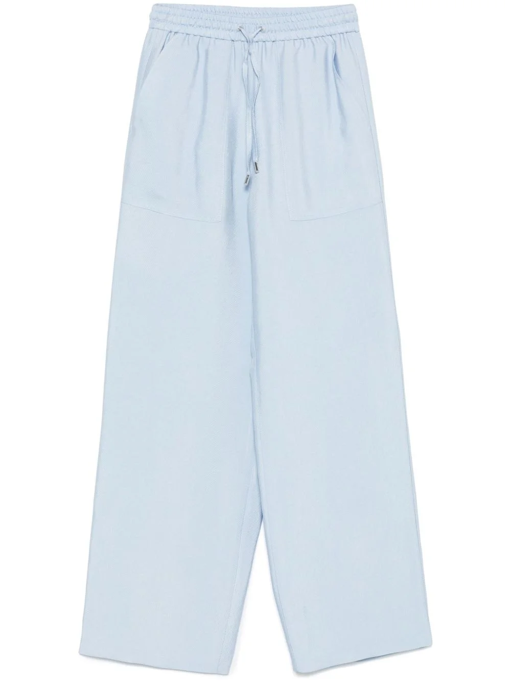 wide-leg twill trousers Highlights - Light blue - Elasticated drawstring waistband - Two diagonal pockets to the sides Imported Composition Viscose 58%, Lyocell 42% SIZE & FIT Model measurements Height 5 ft 11 in(1.8 m) Bust/Chest 31.49 in(80 cm) Hips 36.61 in(93 cm) Waist 24.4 in(62 cm) FittingInformation Designed for a straight-leg fit, these trousers allow for a close fit at the waist and an unrestricted, comfortable fit over the leg The internal drawstring at the hem allows for fitted preferences at the ankle Made from a midweight non-stretch fabric