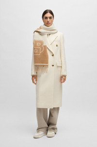 SIZE AND FIT The model wears a size pce. and is 5'9" tall with a, 31" chest, 24" waist and 35" hips. DETAILS Vianna_35*180 - 50533865 A modern scarf made in Italy by BOSS. Featuring twisted fringing and a Double B monogram, this accessory is crafted in wool. Measurements: 164 x 35cm QUALITY & CARE INSTRUCTIONS Dry Clean Only Do Not Tumble Dry Iron Low Heat Quality: 80% Wool, 20% Polyamid Hand Wash Only Do Not Bleach