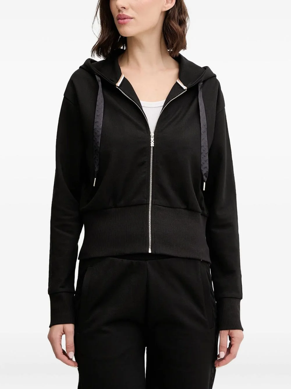 zip-up hoodie Highlights - Black - Zip fastening - Drawstring hood - Ribbed hem - Long sleeves Imported Composition Polyester 64%, Cotton 36% Washing instructions Machine Wash
