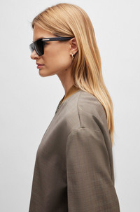 SIZE AND FIT The model wears a size 2 and is 5'10" tall with a, 34" chest, 24" waist and 35" hips. DETAILS Jemata - 50514263 A bomber-style jacket with a solid collar by BOSS Womenswear, crafted in melange virgin wool with smooth lining. Regular fit Fastening top: Zip closure Pockets top: Welt pockets Fully lined Fit back length: 75 cm (30 inches) QUALITY & CARE INSTRUCTIONS Quality: 100% Virgin wool, Lining: 61% Viscose, 35% Polyester, 4% Elastane, Collar: 95% Cotton, 5% Elastane Do Not Tumble Dry Do Not Bleach Do Not Wash Iron Low Heat Reduced Dry Clean