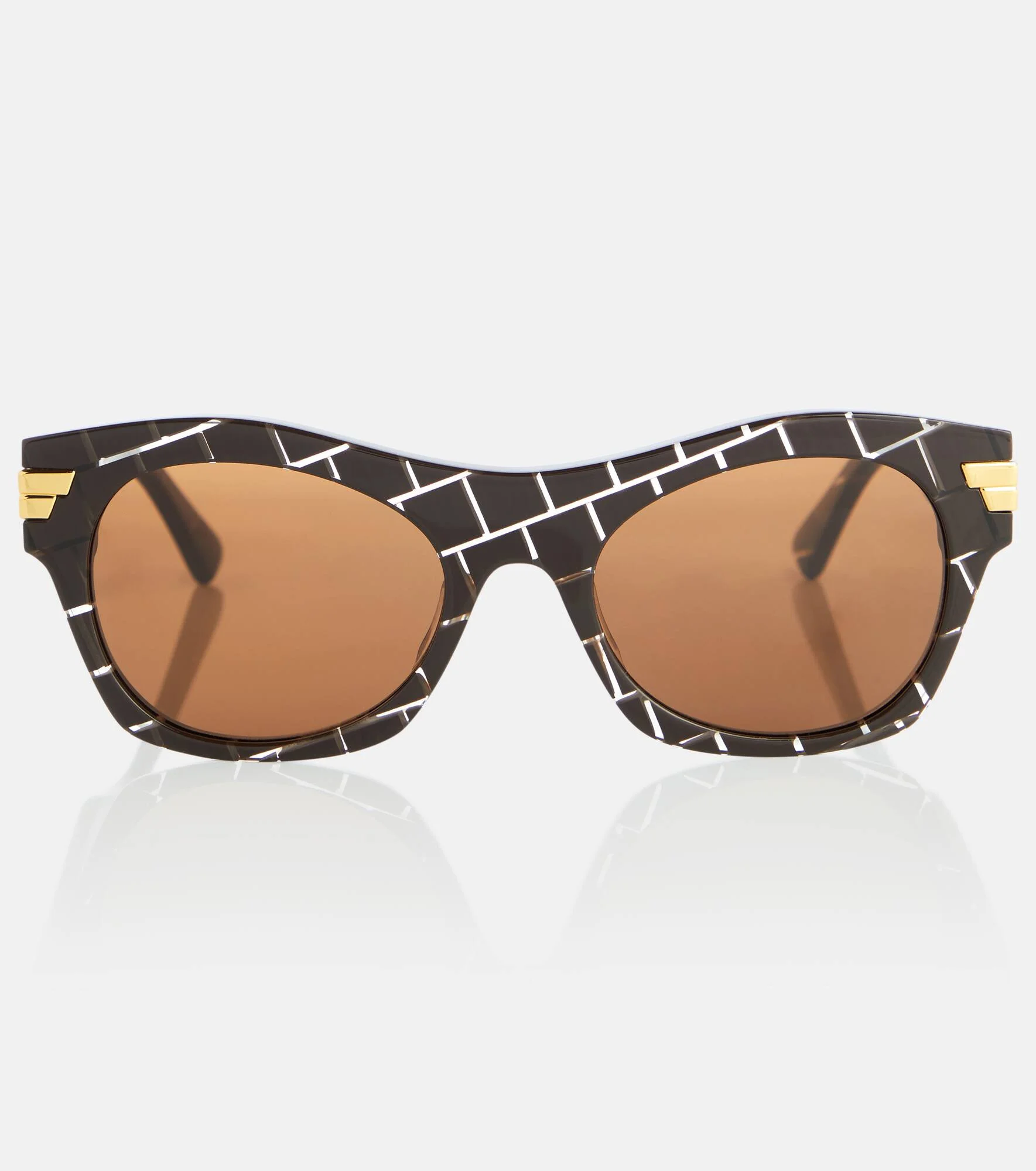 These brown rectangular sunglasses from Bottega Veneta are an accessory to see (literally) and be seen in. The acetate frames are patterned to resemble the label's intrecciato weave, and the temples feature the signature golden metal bars. Please note the color of the case may vary. - material: acetate - lens colour: light brown - frame colour: dark brown - tinted lenses - lens filter category 3 - Made in Japan - comes with cleaning cloth - comes in a logo-embossed case