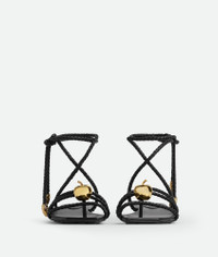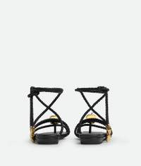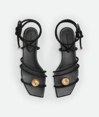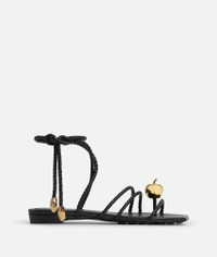 Flat sandal with gold finished apple and snakeheads embellishments. Realised in soft Product Details - Leather lace-up flat sandal with coaxial laces and galvanized embellishments - Material: Lambskin - Unlined - Color: Black - Hardware: Brass finish - Made in: Italy - Product code: 764392VBSDE1000