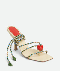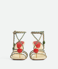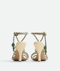 Leather sandal with multicolour coaxial laces and lacquered embellishments. Product Details - Leather lace-up sandal with multicolor coaxial laces and lacquered embellishments - Material: Lambskin - Unlined - Color: Buff/Windswept/Avocado/Dark Praline - Rubber-injected leather outsole - Heel: 9 cm | 3.5” - Made in: Italy - Product code: 816473VBSDG7517