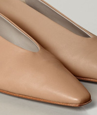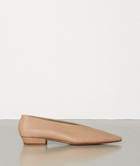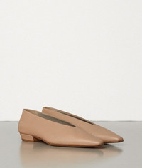Flats with an almond-shaped toe • Exceptionally soft nappa leather • High-cut vamp • Leather lining and cuoio sole DETAILS Composition: 100% Lambskin Color: Slipper Made in Italy
