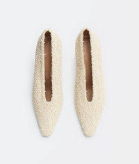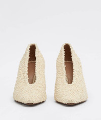 • Fluid bouclé pumps Material: 88% Viscose, 11% Polyamide, 1% Elastane • Lining: Lambskin • Color: Seashell • Leather outsole • Heel: 7.5 cm | 2.9" Made in: italy