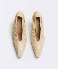 • Crushed leather pumps • Elasticized opening Material: 100% Lambskin • Unlined • Color: Cane sugar • Rubber-injected leather outsole • Heel: 7.5 cm | 2.9" Made in: italy