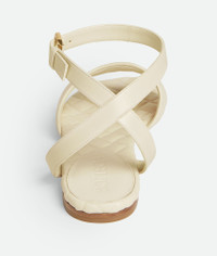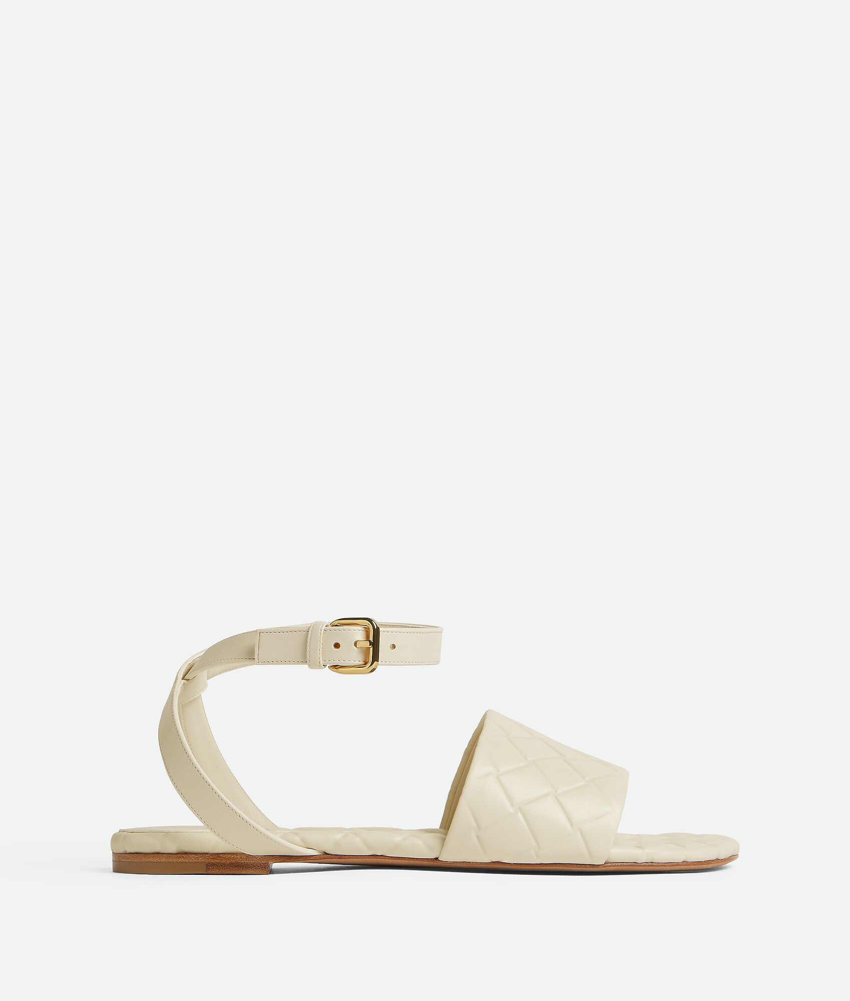 Flat ankle strap sandal in lambskin leather with high-frequency Intreccio pattern. Product Details - Leather flat ankle strap sandal - High frequency Intreccio pattern - Material: Lambskin - Lining: Lambskin - Color: String - Hardware: Brass finish - Leather outsole - Made in: Italy - Product code: 786923V3RS02916