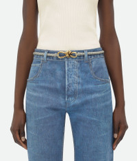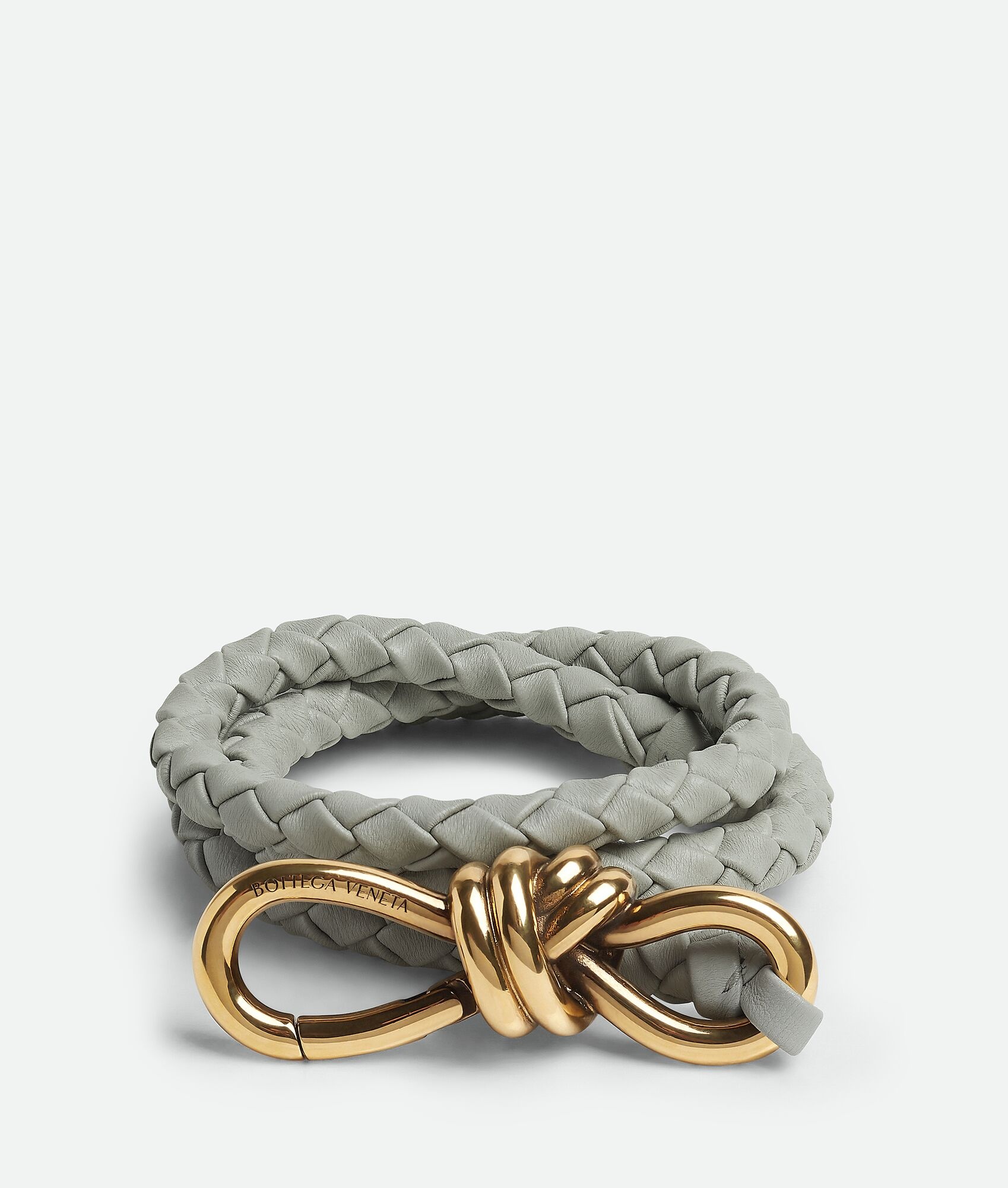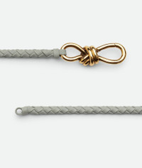 Intreccio nappa elastic belt with knot detail. Product details • Metal closure Material: 100% Lambskin • Lining: Unlined • Color: Agate Grey • Hardware: Muse brass finish • Height: 0.9 cm | 0.4" • Depth: 0.5 cm | 0.2" Made in: Italy